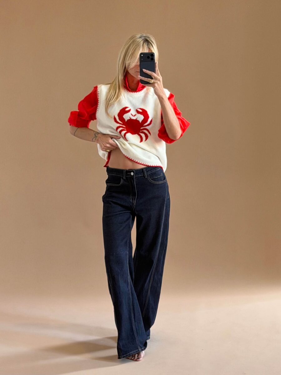 The silhouette widens through the leg and gently tapers at the hem, creating a modern and statement shape.