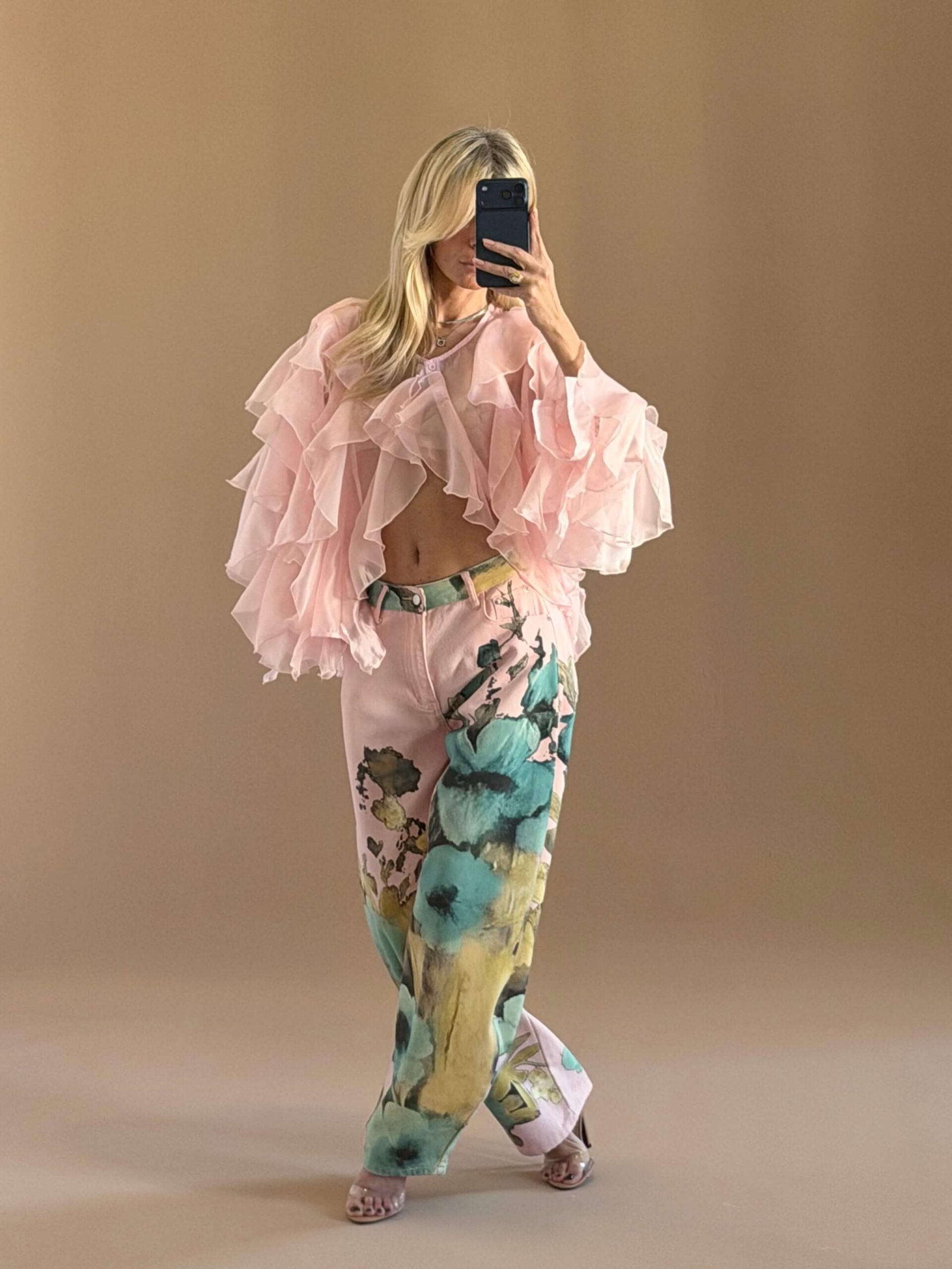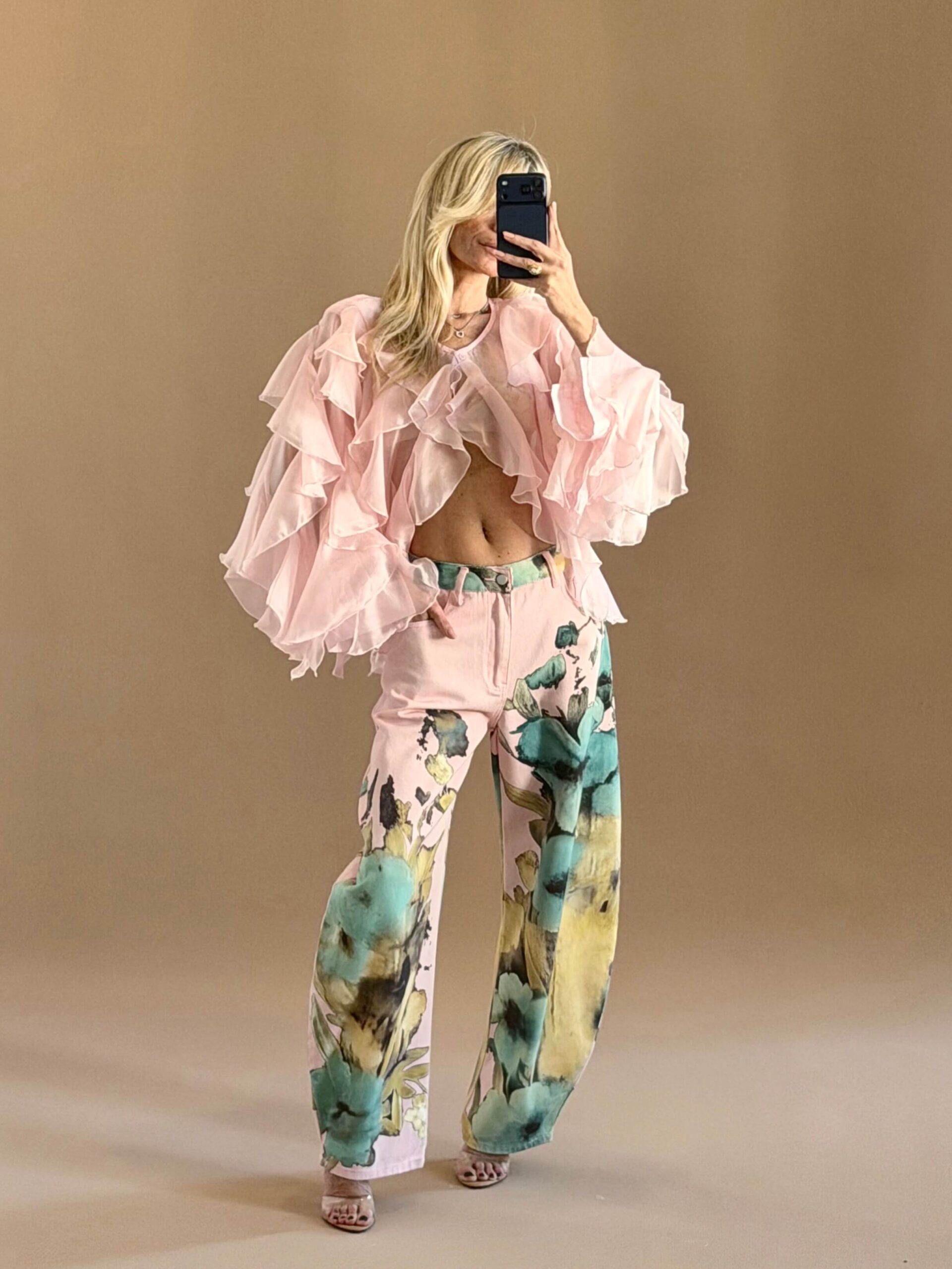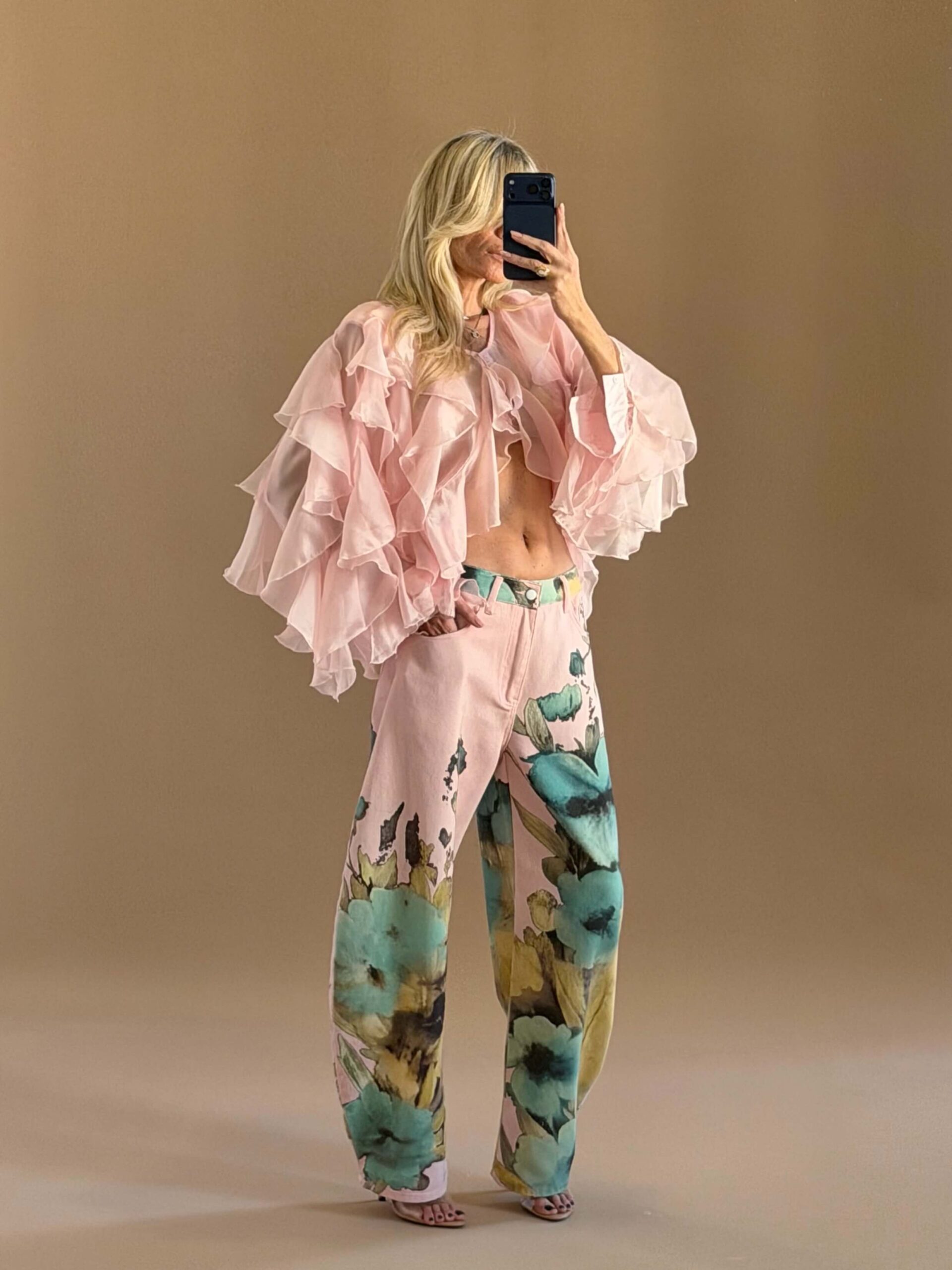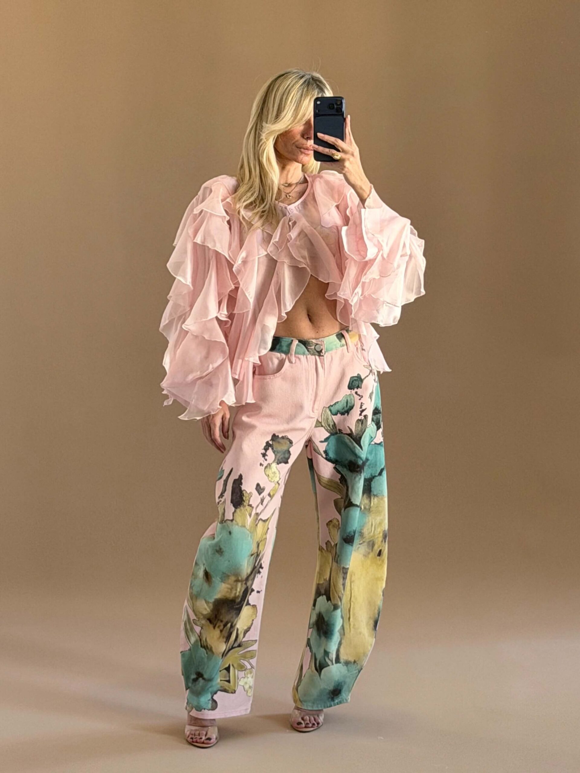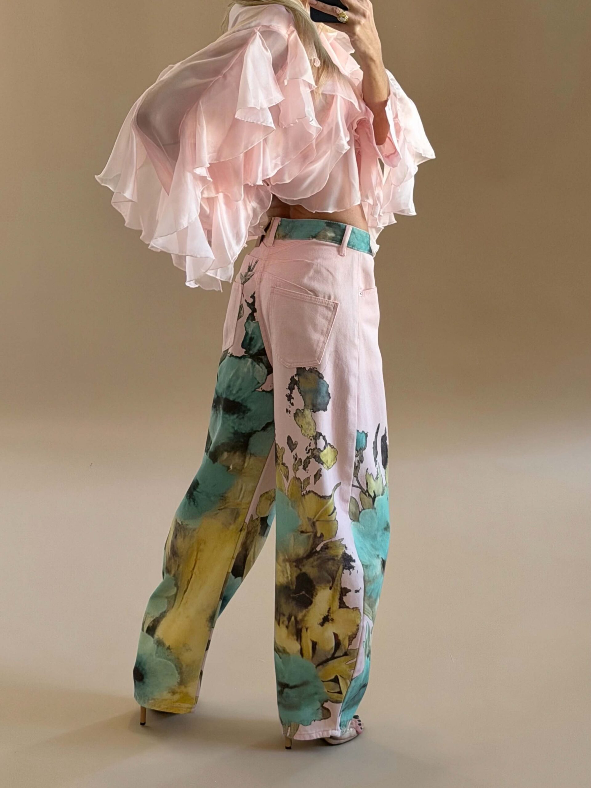 Τζιν παντελόνι με barrel γραμμή και εντυπωσιακό printed σχέδιο.