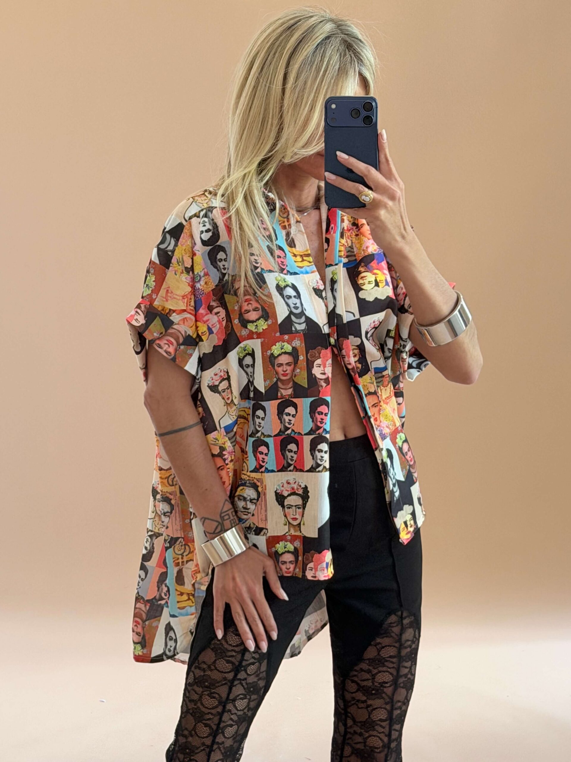Πουκάμισο one size σε άνετη, oversized γραμμή με ιδιαίτερο art collage print εμπνευσμένο από πορτρέτα.