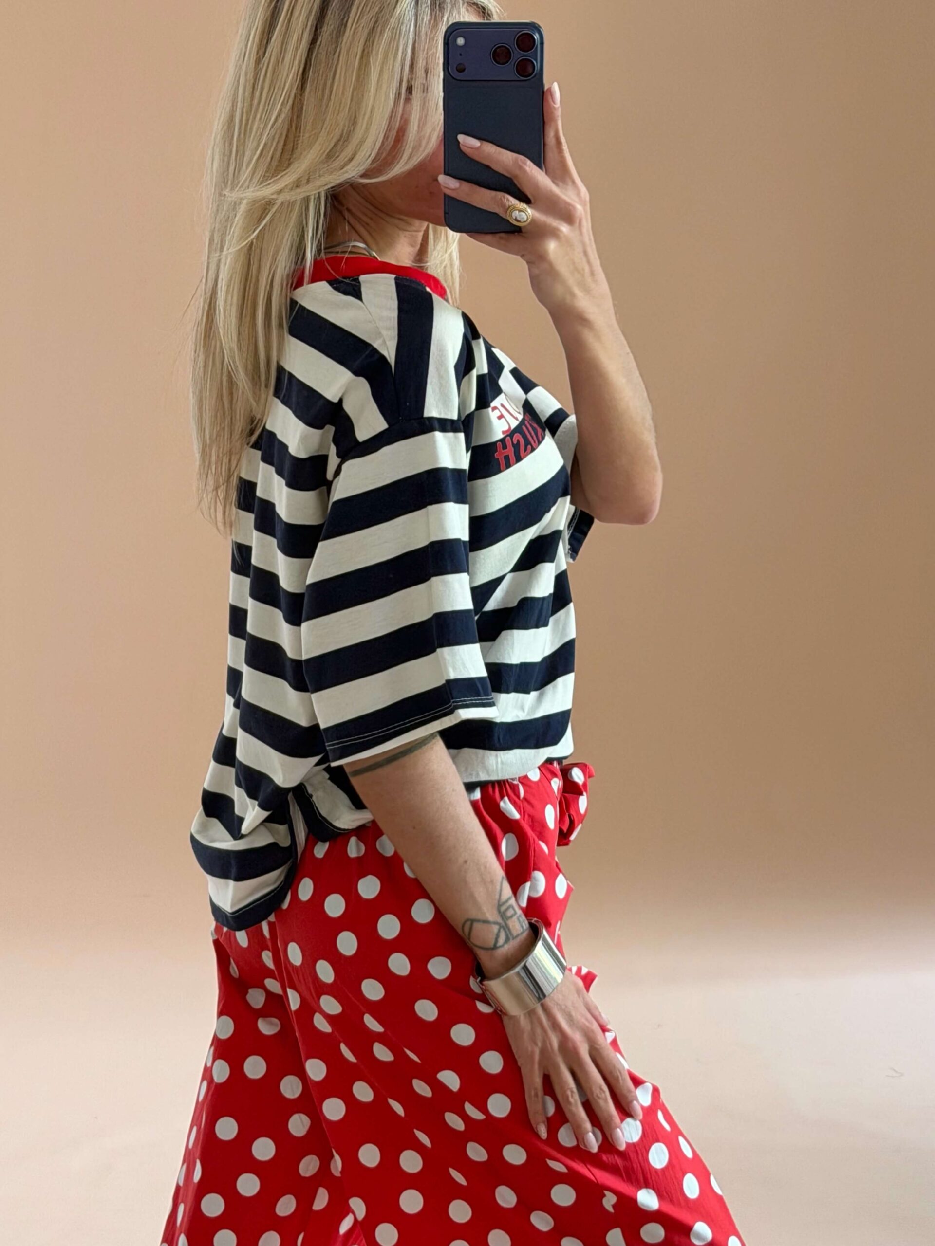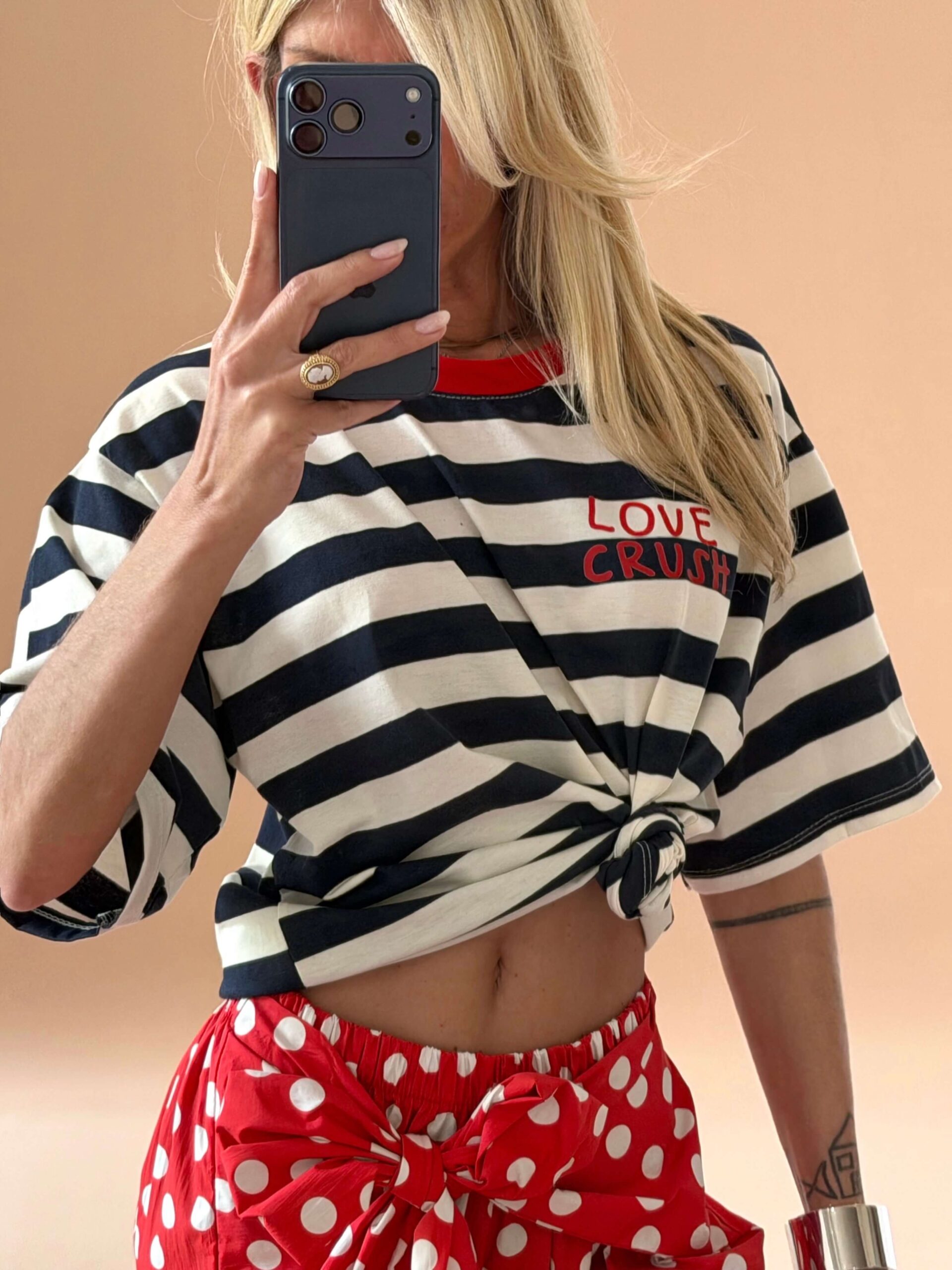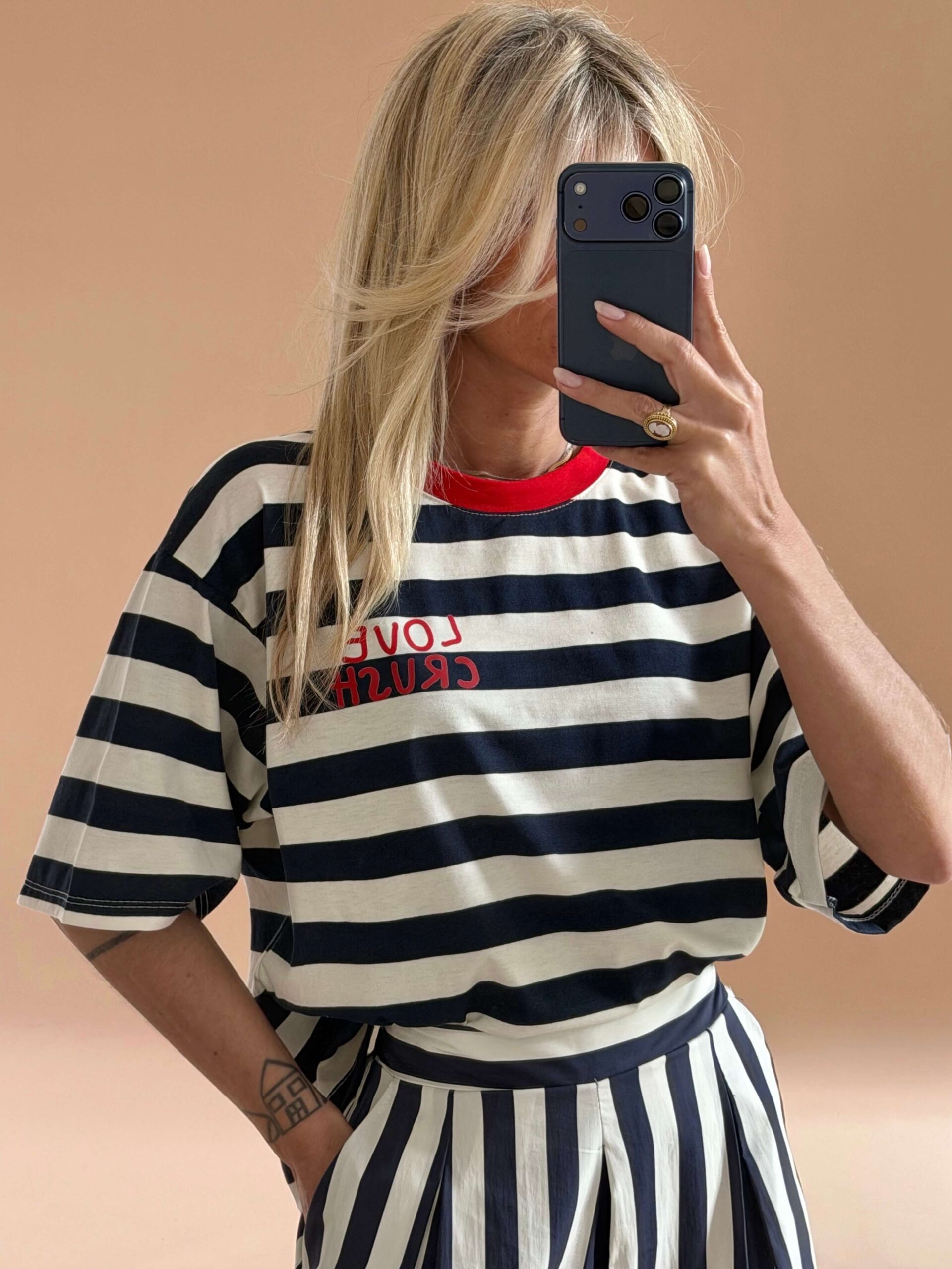 T-shirt σε άνετη γραμμή με ριγέ σχέδιο και διακοσμητικό “Love Crush” μπροστά.
