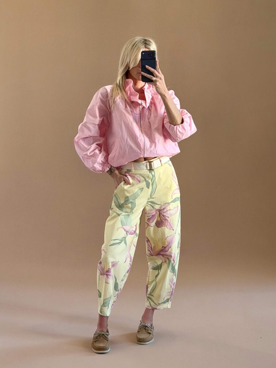 Διαθέτει κουμπί και φερμουάρ μπροστά, ενώ στο πίσω μέρος της μέσης έχει λάστιχο για άνετη εφαρμογή.