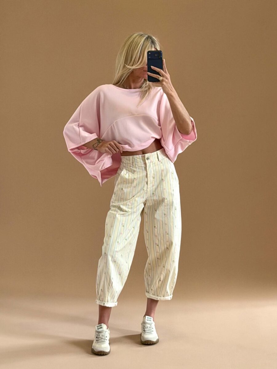 Το τελείωμα είναι ελαφρώς στενό, δημιουργώντας μία κομψή tapered σιλουέτα που κολακεύει το σώμα.
