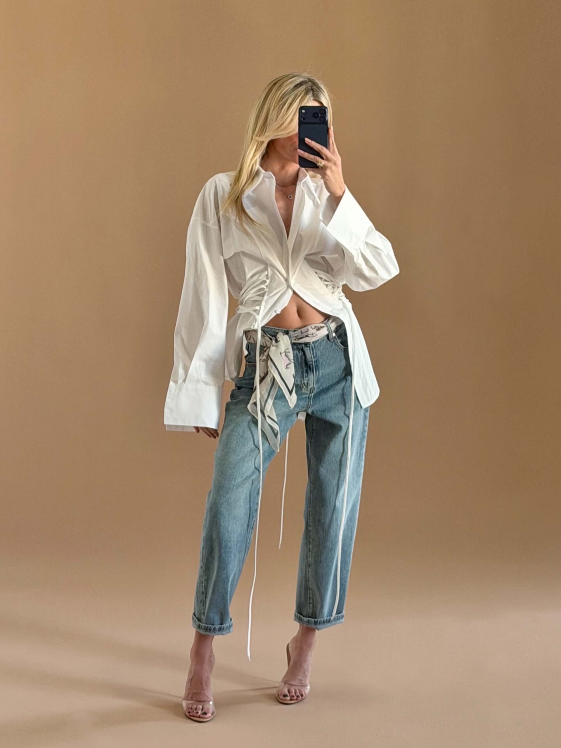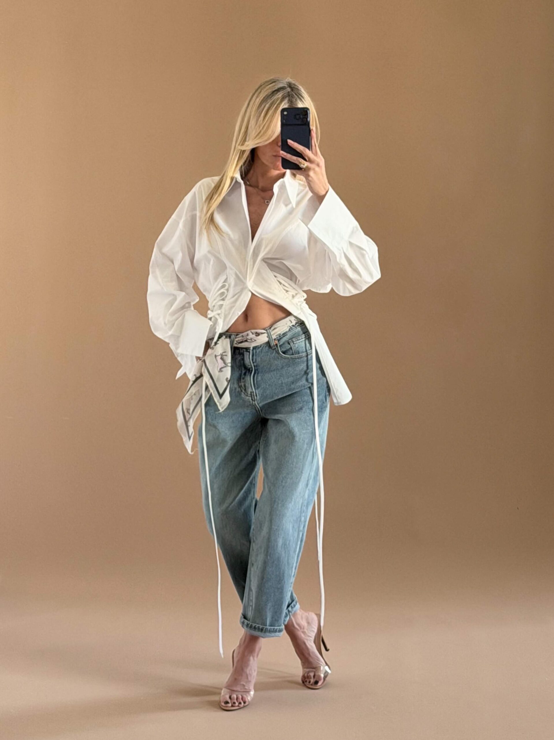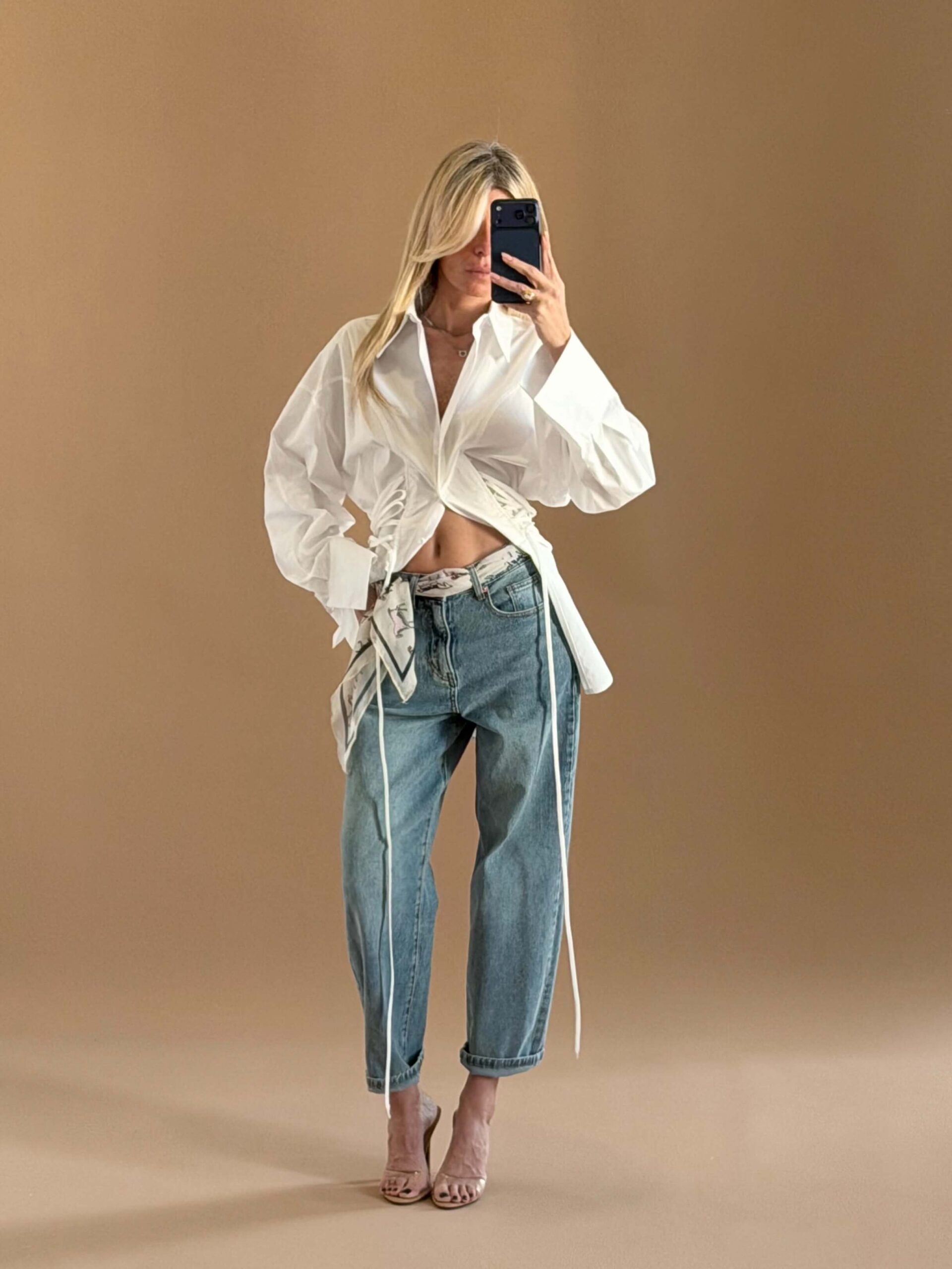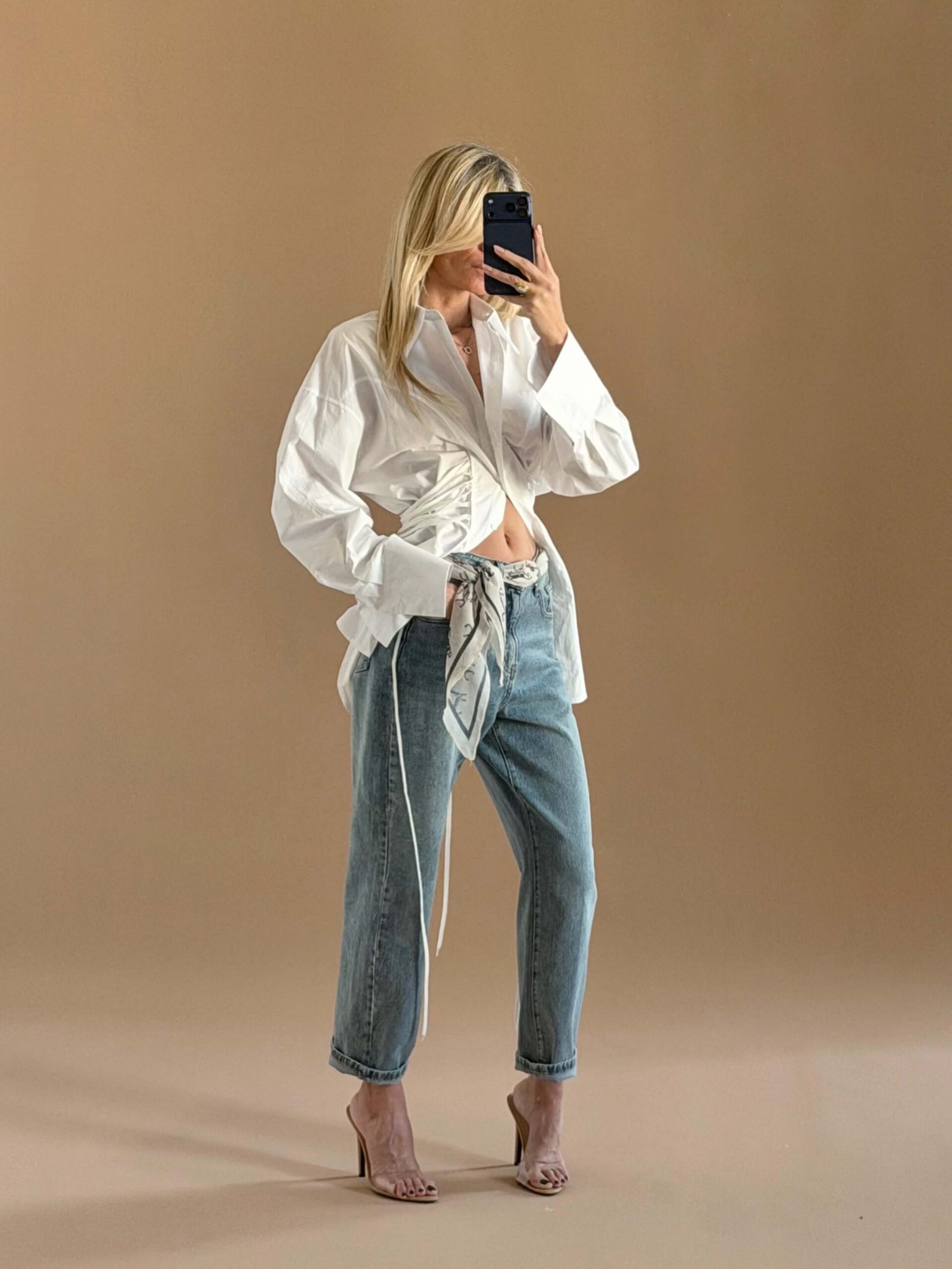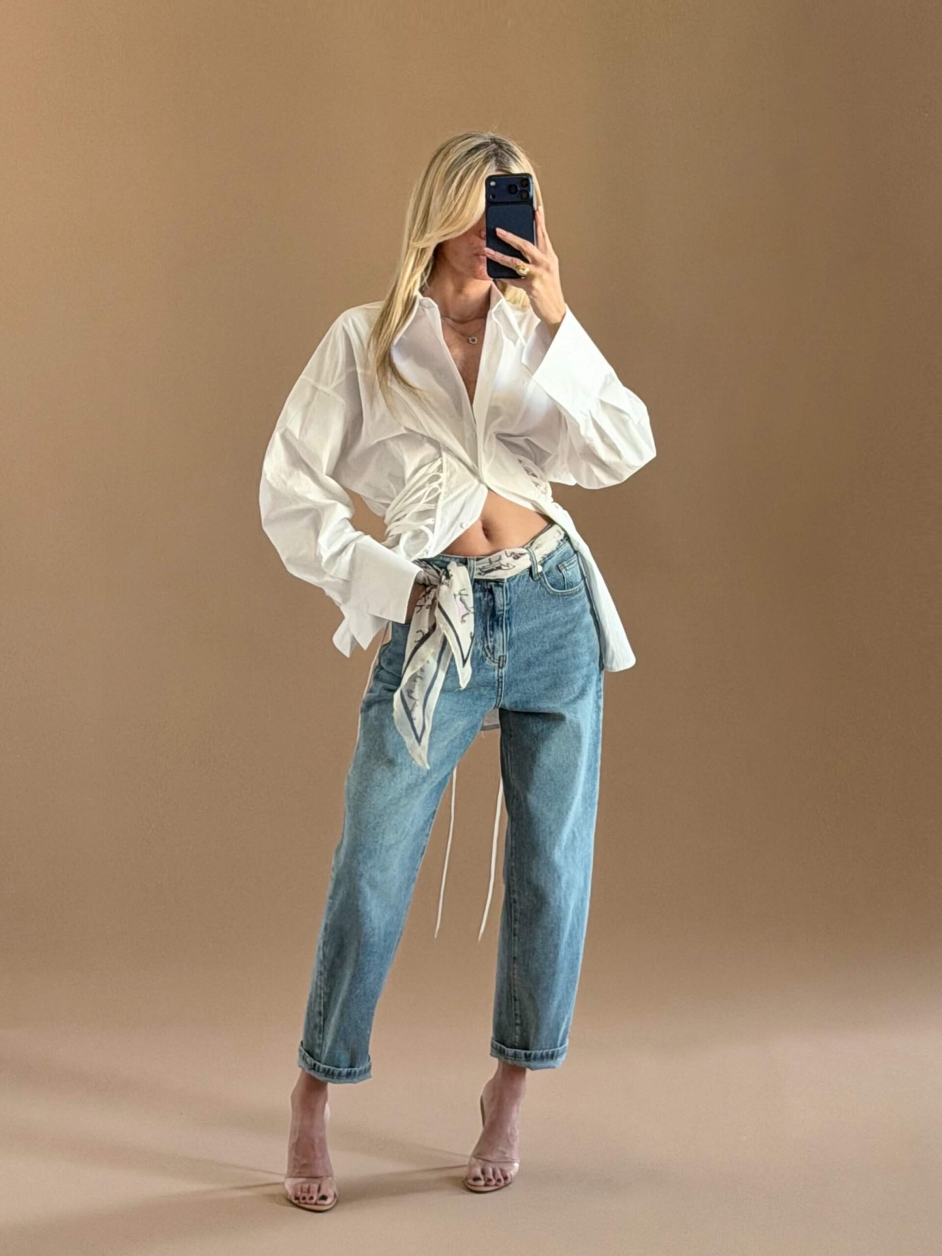 Comes with a scarf that can be styled as a belt or worn as a decorative accessory, offering versatile styling options.