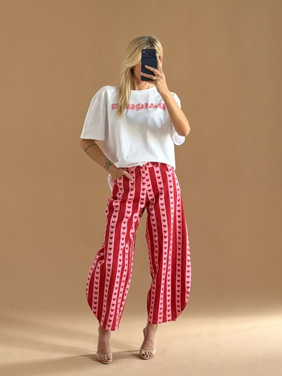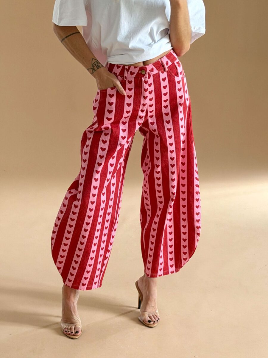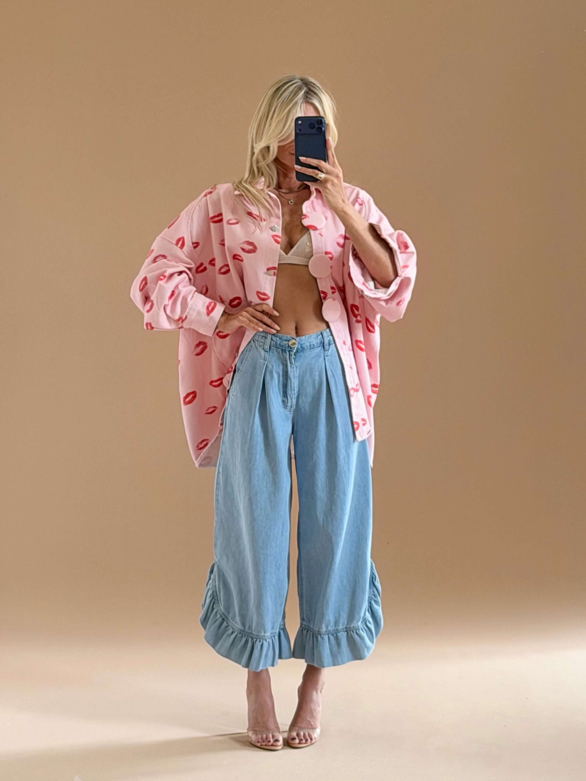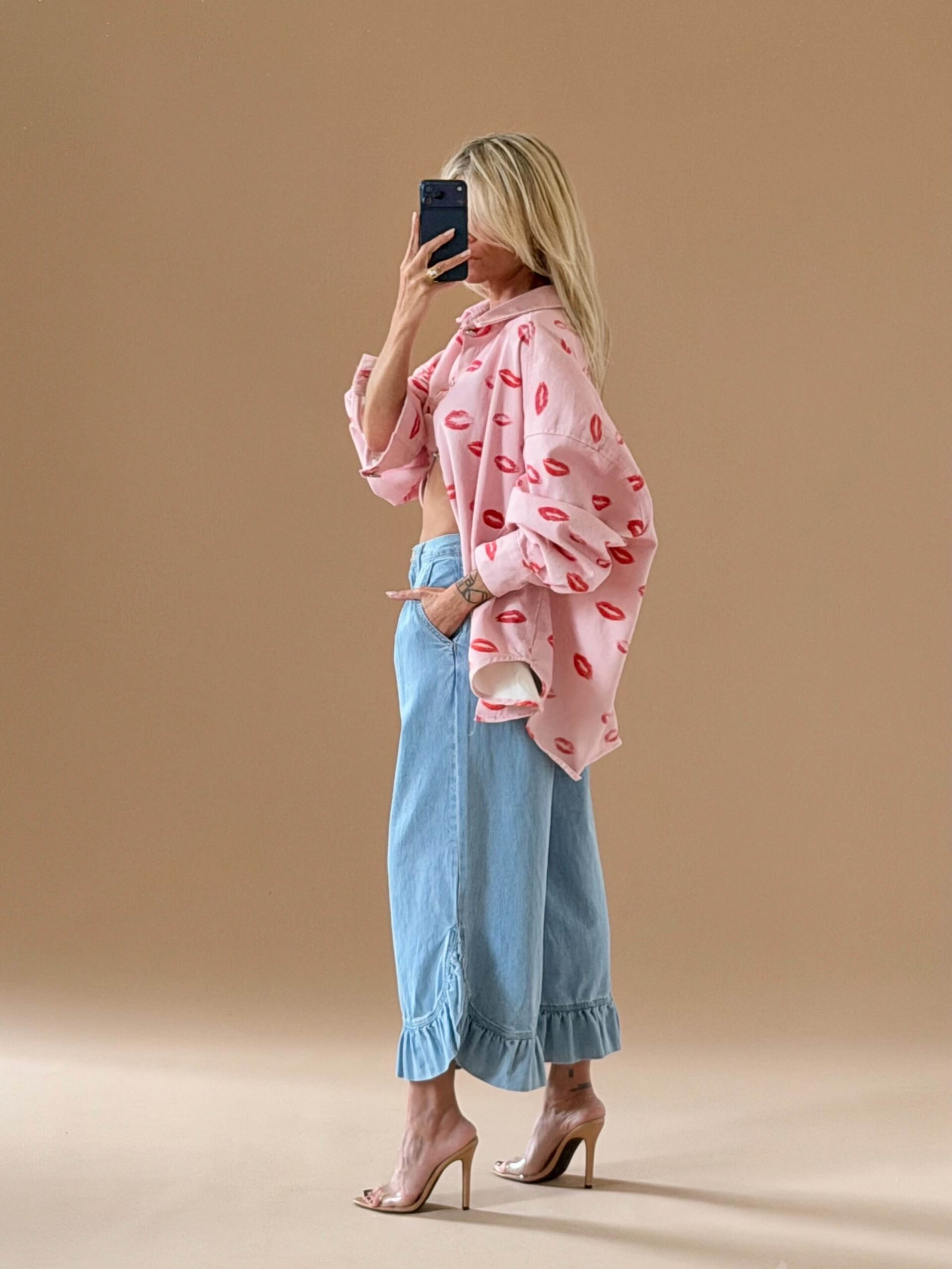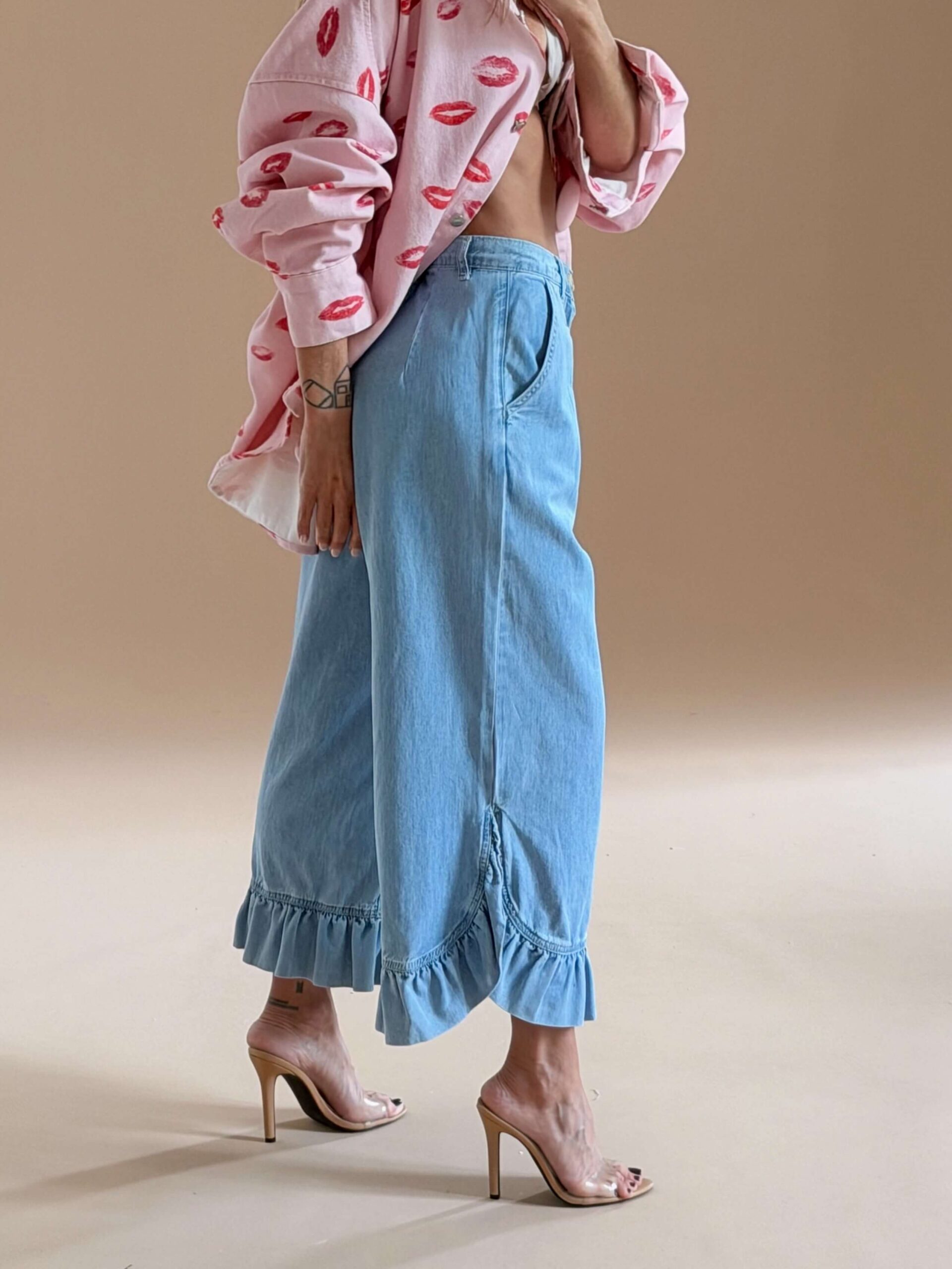 Denim pants in a cropped length with a modern, feminine silhouette.