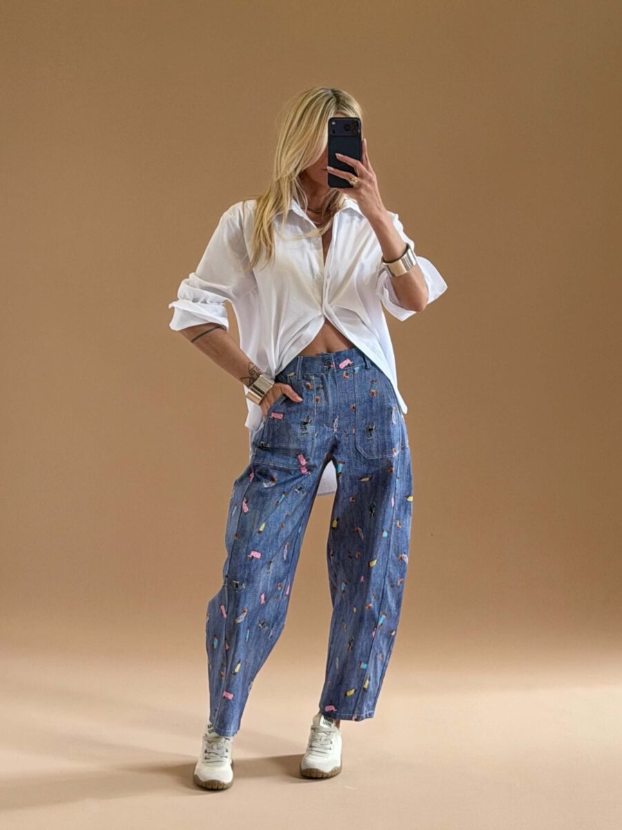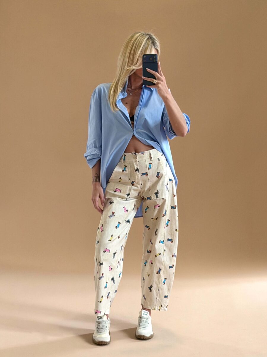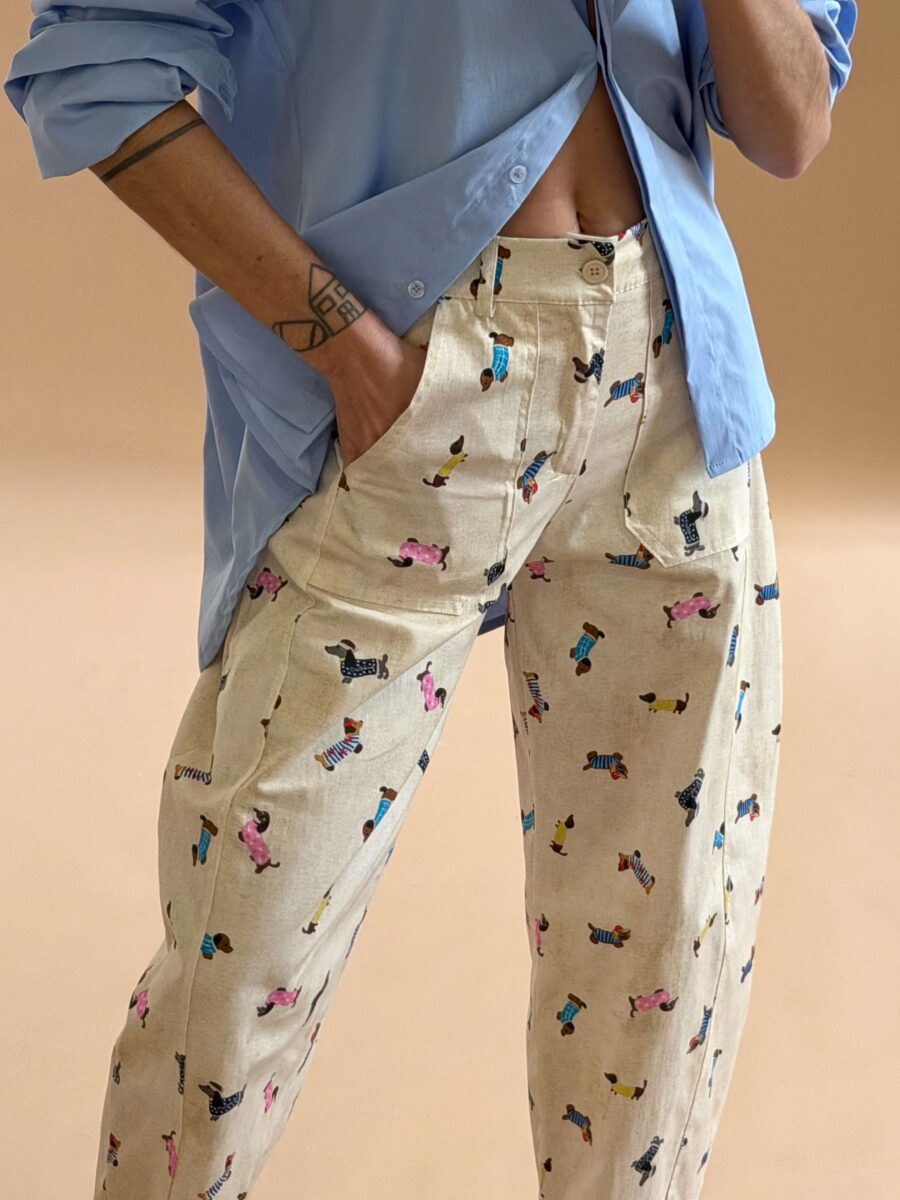 Playful Barrel Print Trousers Beige