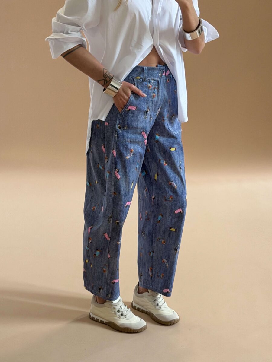 Playful Barrel Print Trousers Blue