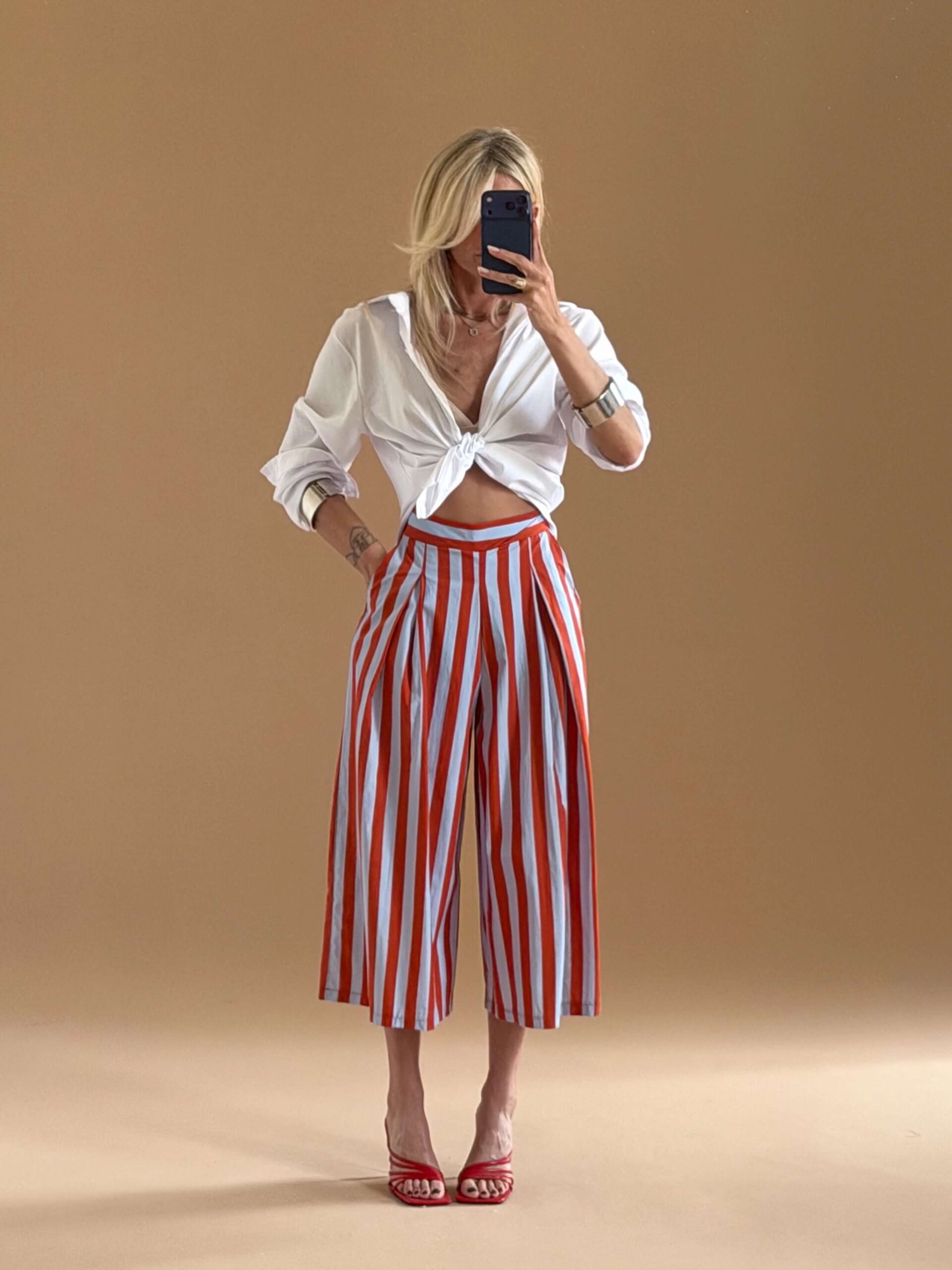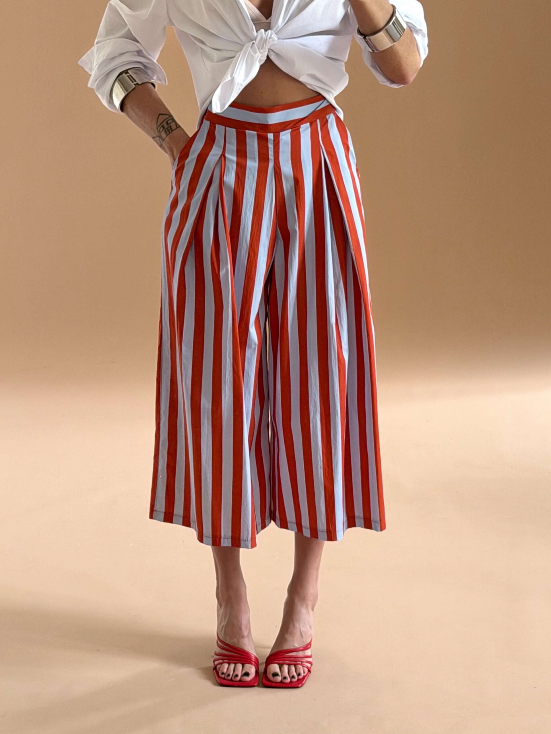 Cropped striped pants.